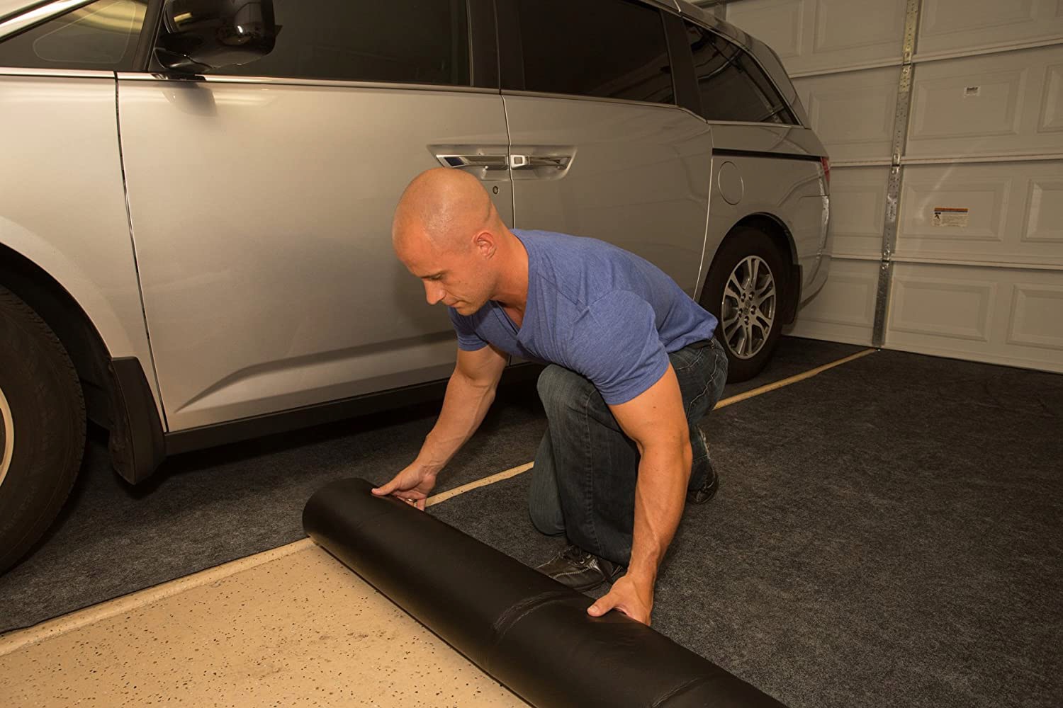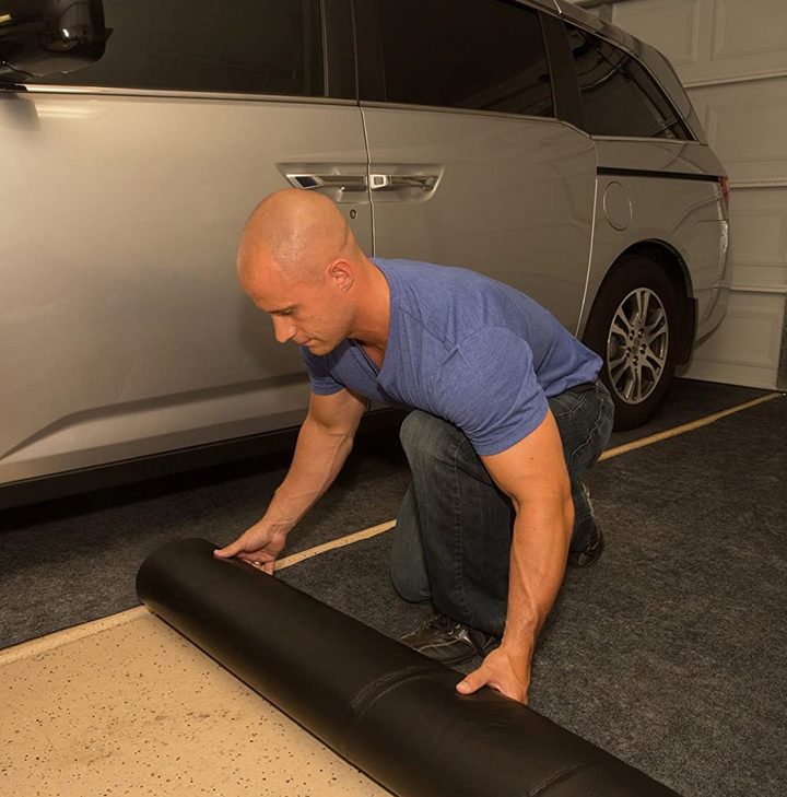 If you have a problem with rain water, snow, or other liquids ruining your garage floor, consider Drymate’s Armor All floor mat. Its specialized Drymate top layer material absorbs liquid, while the waterproof backside offers additional protection for your floor. The mat measures 17’ x 7.4’, but you can easily trim edges to fit the room.
