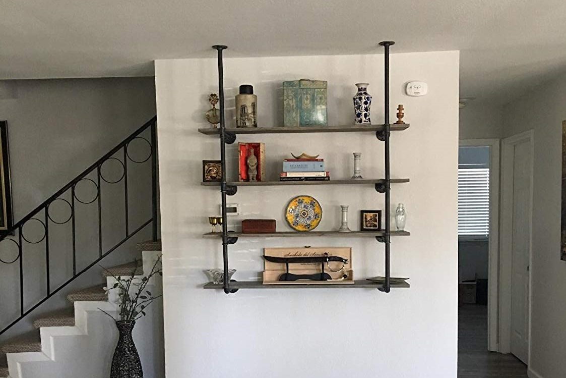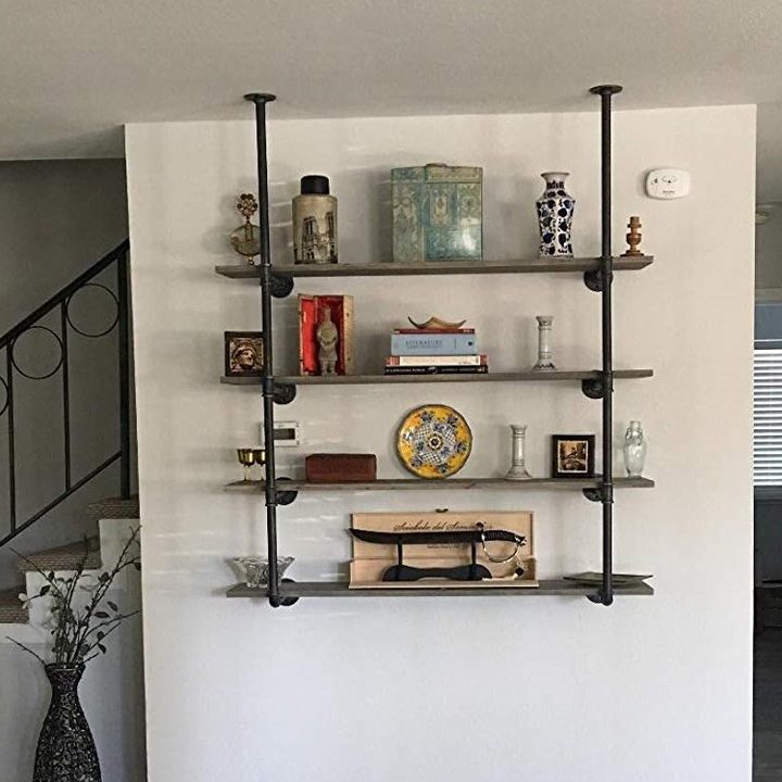 Add a rustic element to your kitchen, library or living room with this Industrial Retro Wall Mount Iron Pipe Shelf Hung Bracket DIY Storage Shelving Bookshelf. This hanging bookshelf has an exquisite rustic industrial look that is both beautiful and practical. Its deep shelf is substantial enough for books, larger vases, mugs or bowls, and artwork. This stunning, open-style bookshelf easily adapts and fits into any room in your home.
