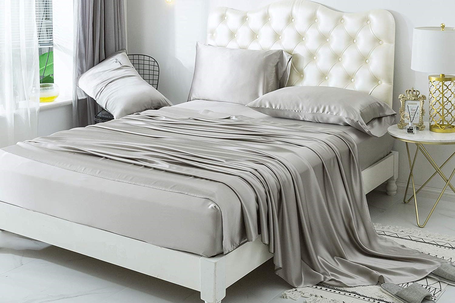 Indulge in the lavish feel of fine silk sheets for an elegant and deeper relaxation that improves your health and even your appearance. The silk sheet sets on our list will look opulent in your room and will feel pleasing while you sleep.