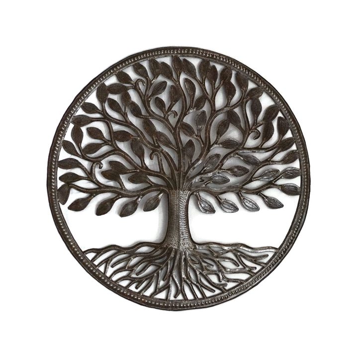 Hand-crafted in Haiti, the Organic Tree of Life Metal Sculpture is made from recycled steel barrels with the goal to fight poverty through art. It is a timeless and elegant piece that will add a beautiful metal element to your home while promoting fair trade and wages to the artists who need it most.