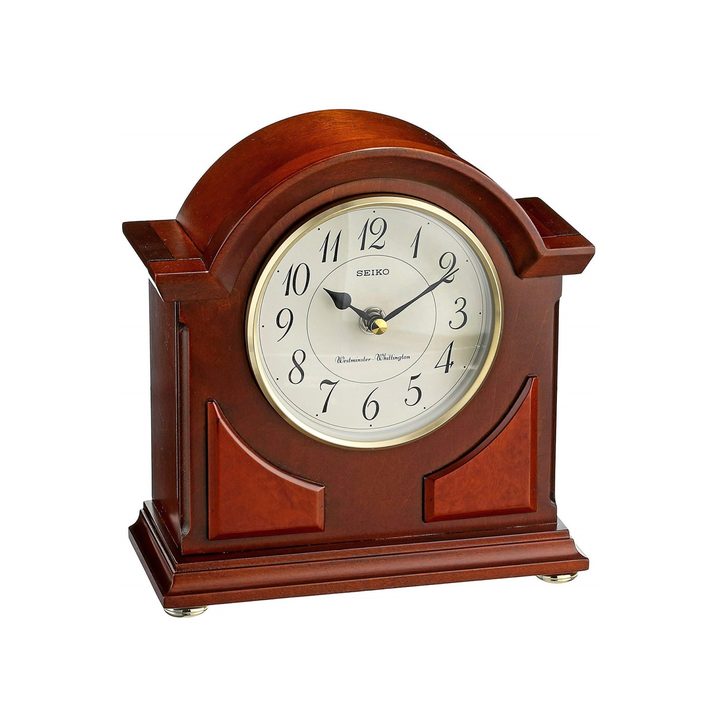 When design is a top consideration, check out Seiko’s Wooden Chime Mantel Clock that offers a traditional and attractive arched design. The clock has a nine-inch face and dark brown wooden finish. Touch up your mantel or accentuate your bedroom side table with this beautiful wood clock.