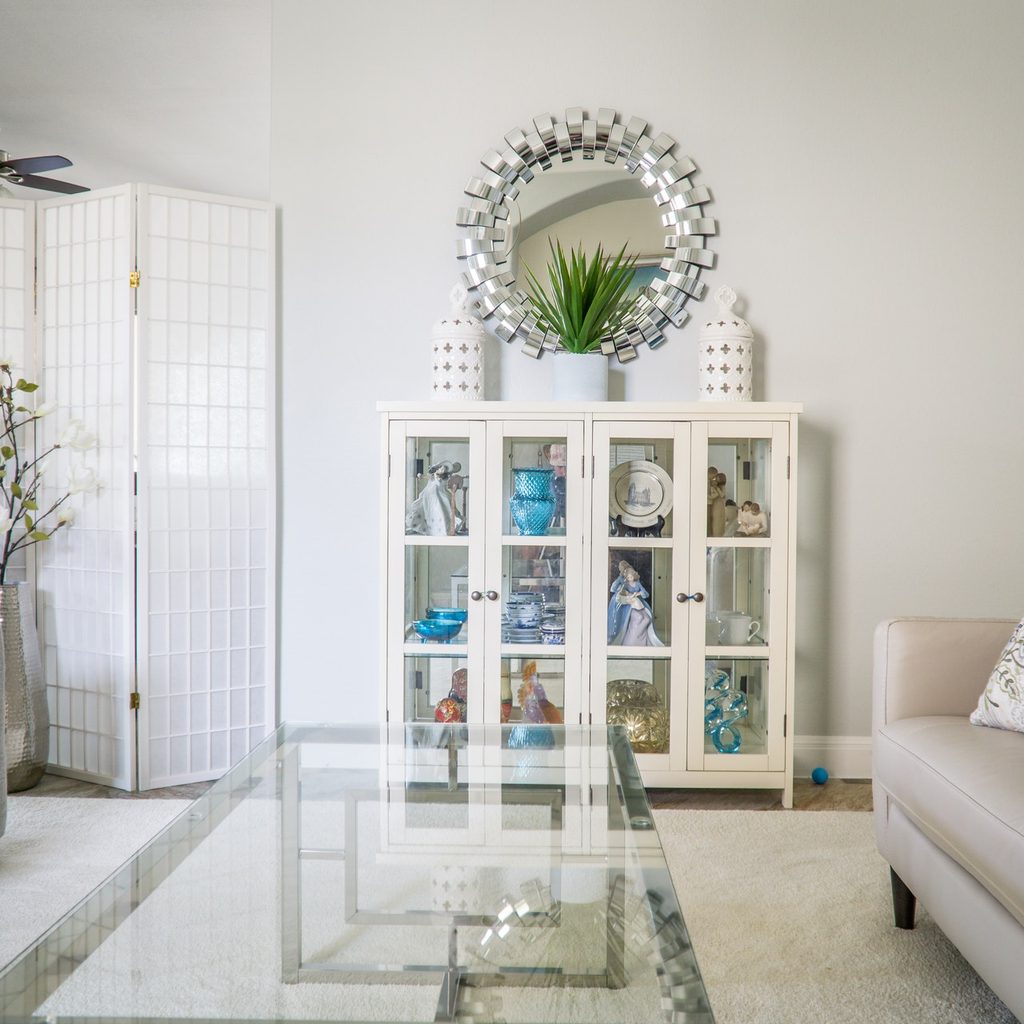 Mirror, mirror(s), on the wall . . . can help make your living room look bigger and brighter. If you have a smaller living room or a combined living room and dining room multi-use space, a mirror can give the illusion that the space is roomier. Mirrors can also brighten a windowless room and take the place of windows. “For example, if your living room is a little bit dark because it doesn’t get as much natural light, you can use mirrors and sculptural lamps to add both decor and brightness to the room,” according to Pottery Barn. Mirrors can reflect lamplight and illuminate the space.