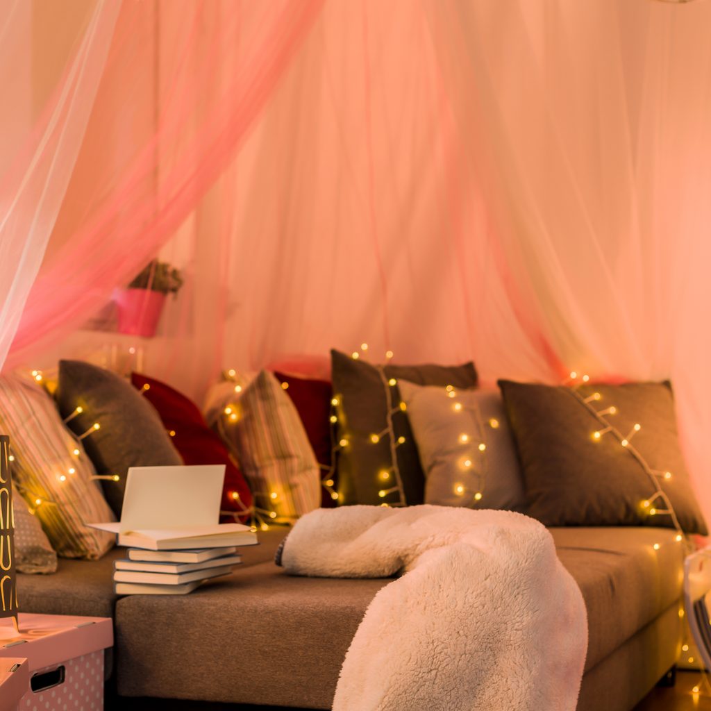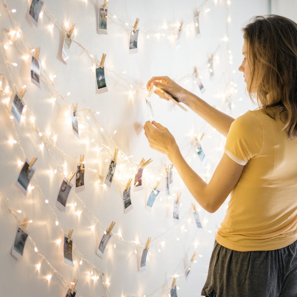 If your teen has roughly a million pictures on their phone, turn their favorite pics into works of art. Start by having your teen choose their favorite photos, and help print them out. Next, hang twinkle or fairy lights on their wall. Use removable hooks so that the wall isn’t damaged, and you can create an entire accent wall of soft glowy lights or designate a smaller space above their headboard for the lights. Then, using small clips or mini clothespins, hang the pictures between the lights. Now your teen has a personalized light installation in their room that creates ambiance and style. Plus, whenever they feel like changing up their room, they can simply update the pictures.