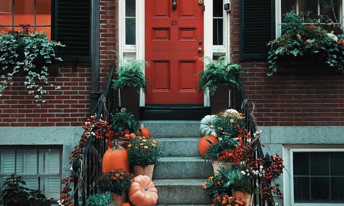 If you live in a warmer climate, take advantage of the hotter fall days by adding a few potted fall flowers to your front door space. Be sure to use pots in various sizes, colors, and shapes to create a varied effect.