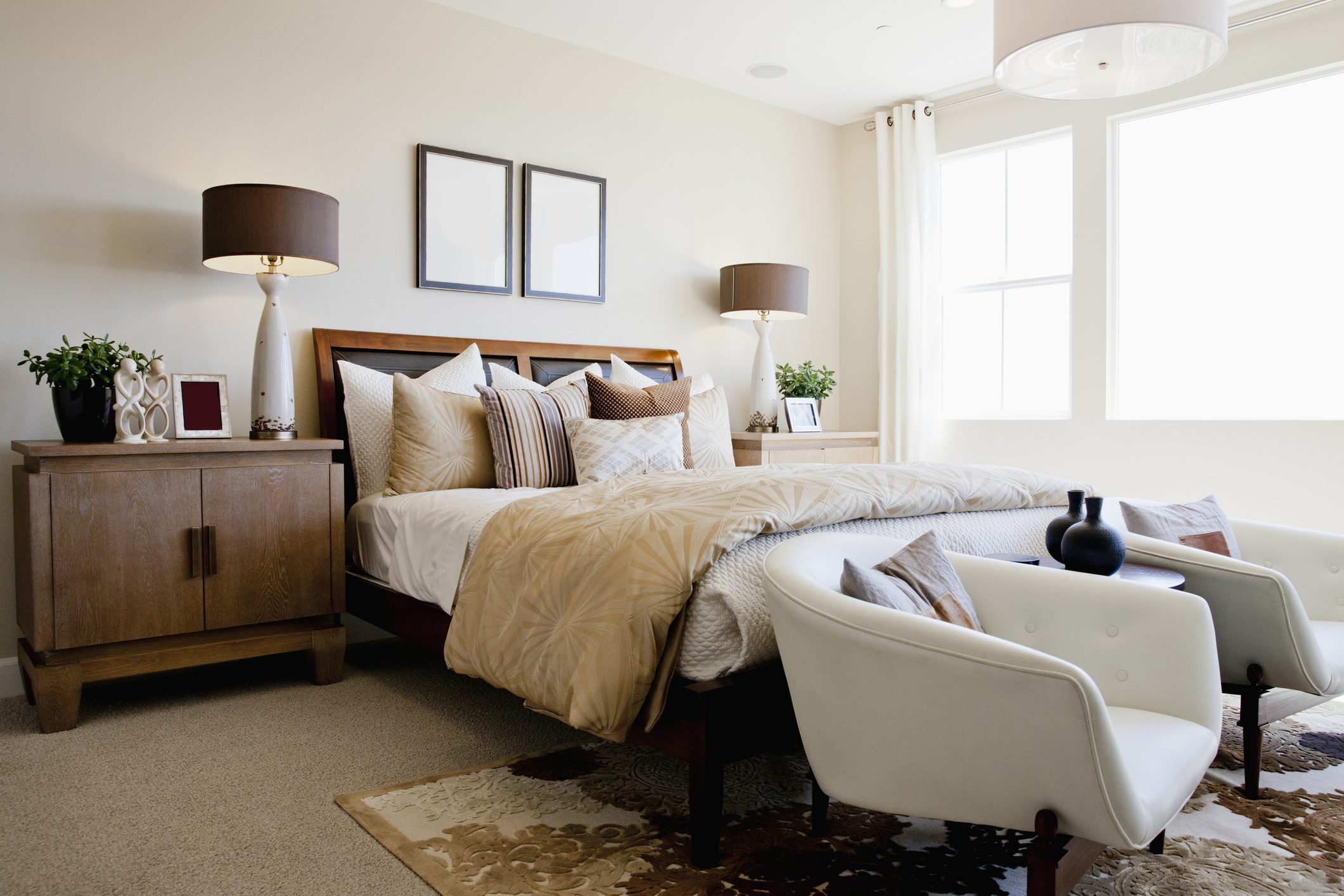 You may have a complete matching bedroom set, but many people don’t. If you do, you can add a comfortable chair and soft throw to give yourself a quiet oasis to read or meditate. You can also add an interesting bedroom bench at the foot of the bed that can provide a spot to put shoes on, storage for all that bedding we talked about, or just to add some interest to a matchy room.