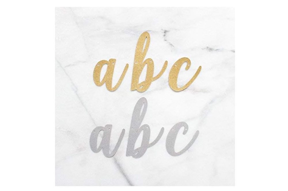 For a sophisticated touch, seek out a custom banner with script lettering. The Alexis Mattox Design Customizable Banner comes with gold or silver script letters as well as numbers and symbols. Gold banners come with gold baker’s twine and silver banners come with silver baker’s twine for hanging in your desired color choice.