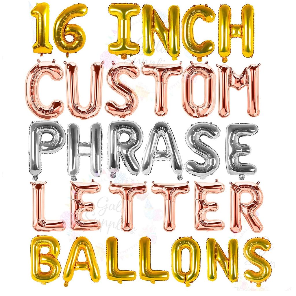 Balloons always help make a party or occasion more fun, so consider a balloon custom banner. The Gala Supplies Balloon Banner features 16-inch, foil mylar letter balloons to personalize a banner for birthday parties, photoshoots, weddings, bridal showers, baby showers, gender reveals, and other events. The air-filled balloons feature two holes on the top of each letter so they can be hung together with the included string.