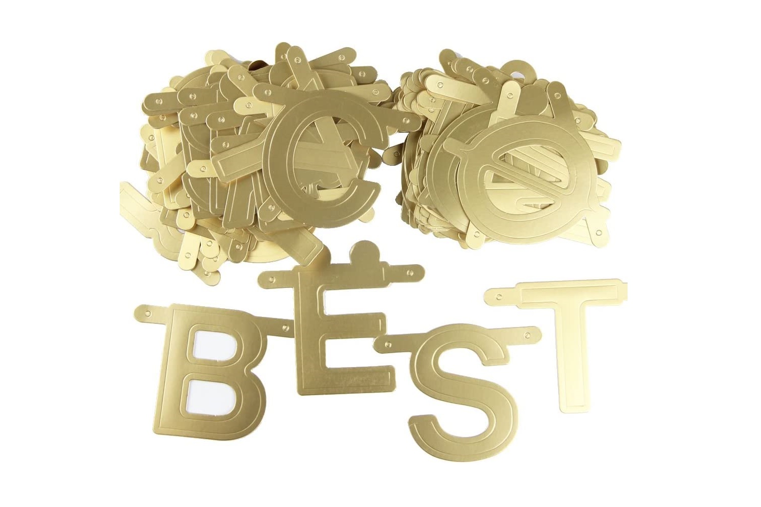 When you’re ready to display your custom banner, you don’t want to spend a lot of time hanging it since you’ll have other pressing party duties. The SUNBEAUTY Customizable Banner ranks among the easiest-to-hang options. It includes 124 gold letters, symbols and spacers to customize a message and then hang the banner with strings. You can spell out a personalized message with the reusable letters and then display the banner on a wall, window, or table edge.