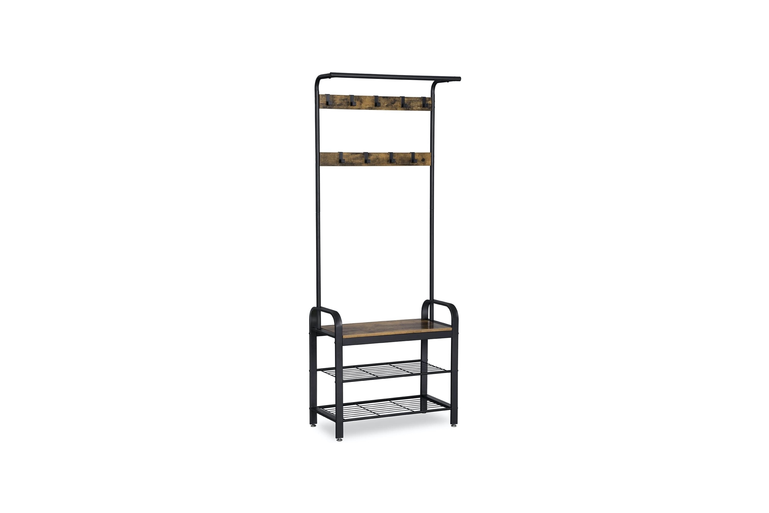 Take a look at the superior design and striking presence of the VASAGLE Industrial Coat Rack Shoe Bench. This lovely bench is quite the looker and delivers on functionality. It features 10 hooks, two racks for shoes, and a sturdy bench with a maximum capacity of 176 pounds. You will love the appearance and practicality of this great piece of furniture.