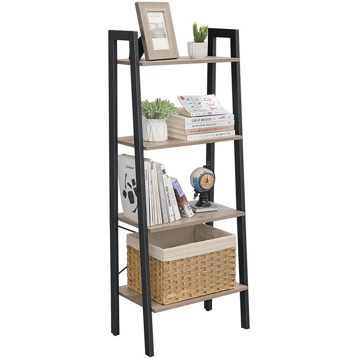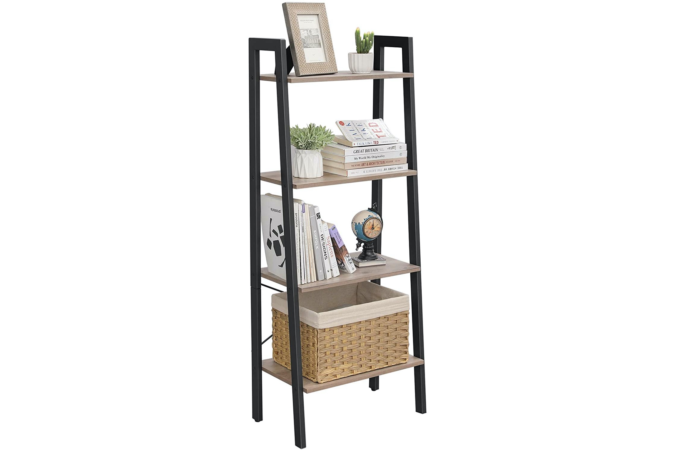 The VASAGLE ALINRU Ladder Shelf is a leading overall option in the ladder-shelf realm. By offering a design with rustic, greige wood tones, and four stable shelves, it aims to provide the best of both worlds in attractiveness and practicality. The shelves get wider from top to bottom on the unit, offering a variety of space for displaying items or showing off favorite decor.