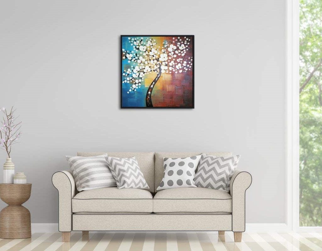 A handmade oil painting of a blue and white flower tree with leaves that look like raindrops. Sound appealing? It sure is, and it’s what makes the Asdam Art Hand Painted Painting a great overall choice for your bedroom. The 24-by-48-inch painting is stretched and framed, waterproof and easy to hang. It also features pleasing yellow and red colors.