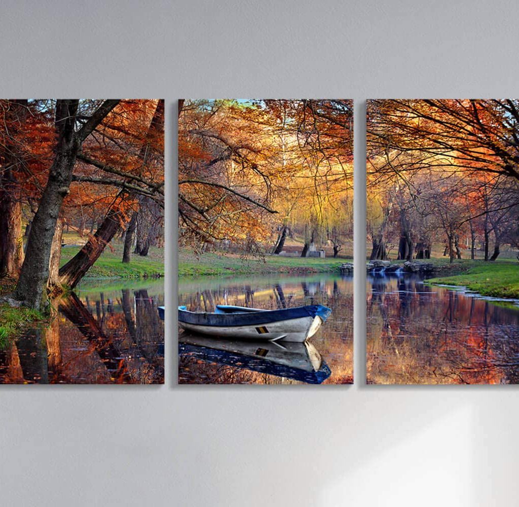 Give your living room a serene ambiance with the Artistic Path Abstract Tree Artwork. This beautiful photographic art print displays a small river flowing stream through an autumn forest. It matches any home decor and is as stunning as it is relaxing.