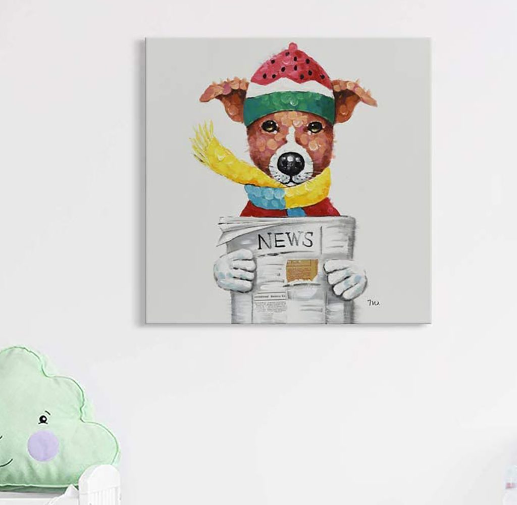The Seven Wall Arts Modern Animal Painting is a contemporary and lighthearted representation of a dog reading the newspaper on canvas. This 100% hand painted oil keeps its color and won’t fade away. It’s perfect for those who collect animal artwork or for any dog lover who appreciates modern art.