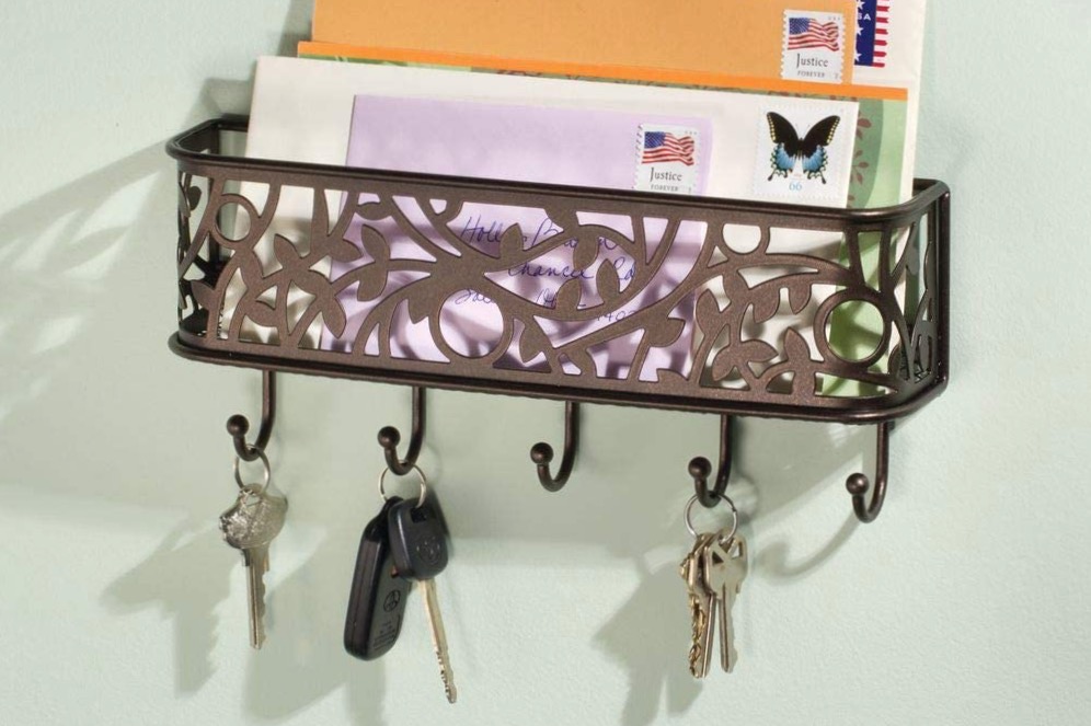The mDesign Wall Mount Entryway Organizer is one of our favorite key holders. It features five hooks and a super-useful organizing basket to store important mail, notes, and bills that need to be paid. It creates extra storage wherever you place it and adds a touch of rustic chic to your home.