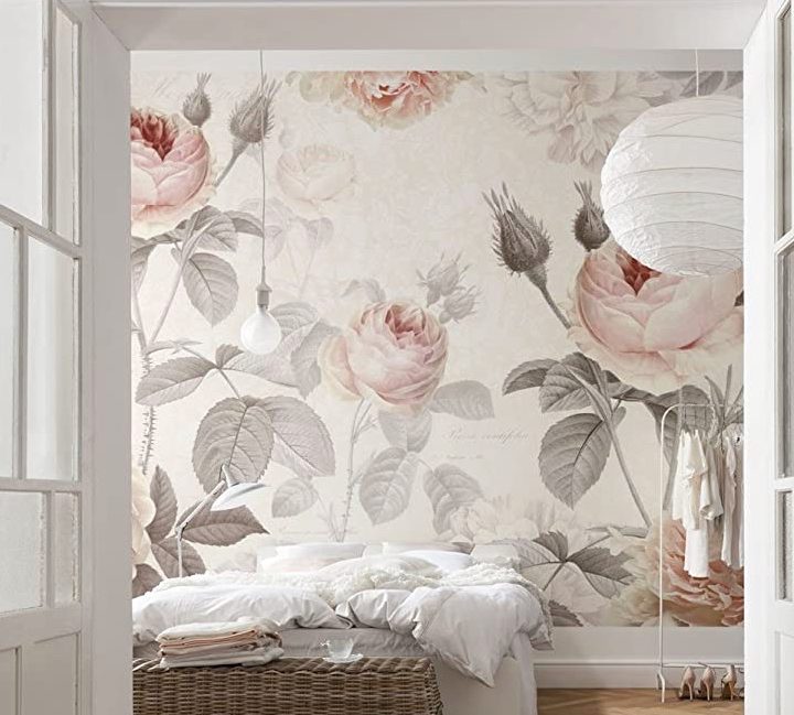 Komar’s Modern la Maison wall mural comes with four panels measuring 12.1 feet wide and 8.3 feet high each. The blush pink peonies and soft green-gray petals are ideal for parlors and bedrooms. Note that the mural requires paste for mounting.