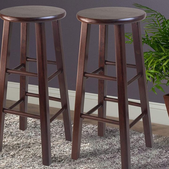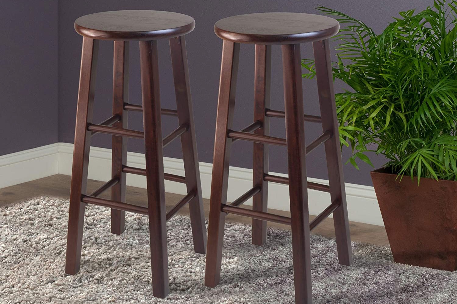 The Winsome Pacey Stool is a classic set of two barstools made of beautiful walnut wood with a traditional design that looks great in any home. Their solid wood construction is sturdy and provides 29 inches of seating, to work great with most counter heights. They feature squared legs and beveled seating, for comfort and great durability.
