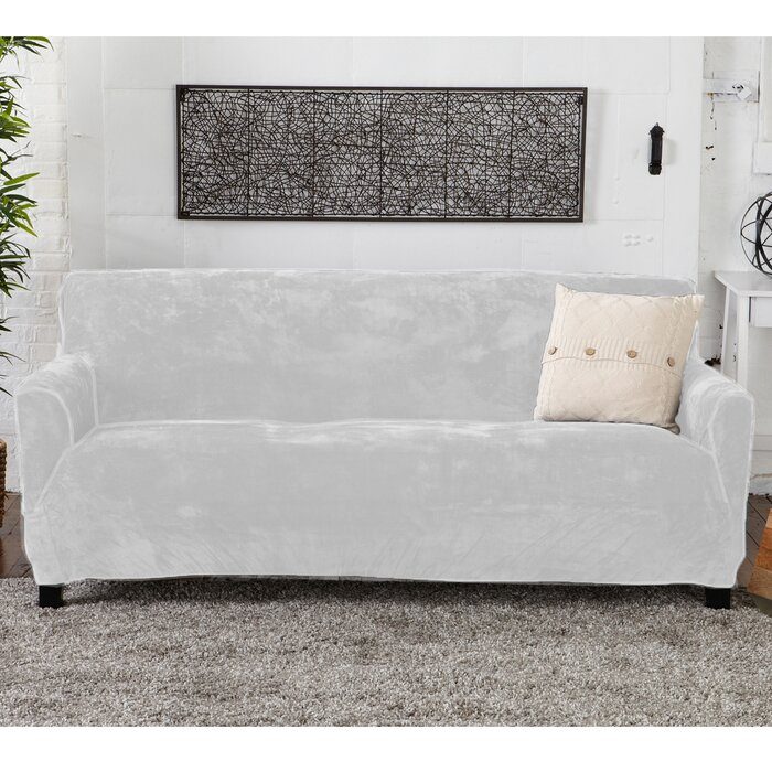 A simple chair or sofa slipcover in a bold color or rich pattern can easily transform your room. This gorgeous Velvet Plus Form Fit Stretch Box Cushion Sofa Slipcover from Winston Porter caught my eye right off the bat.