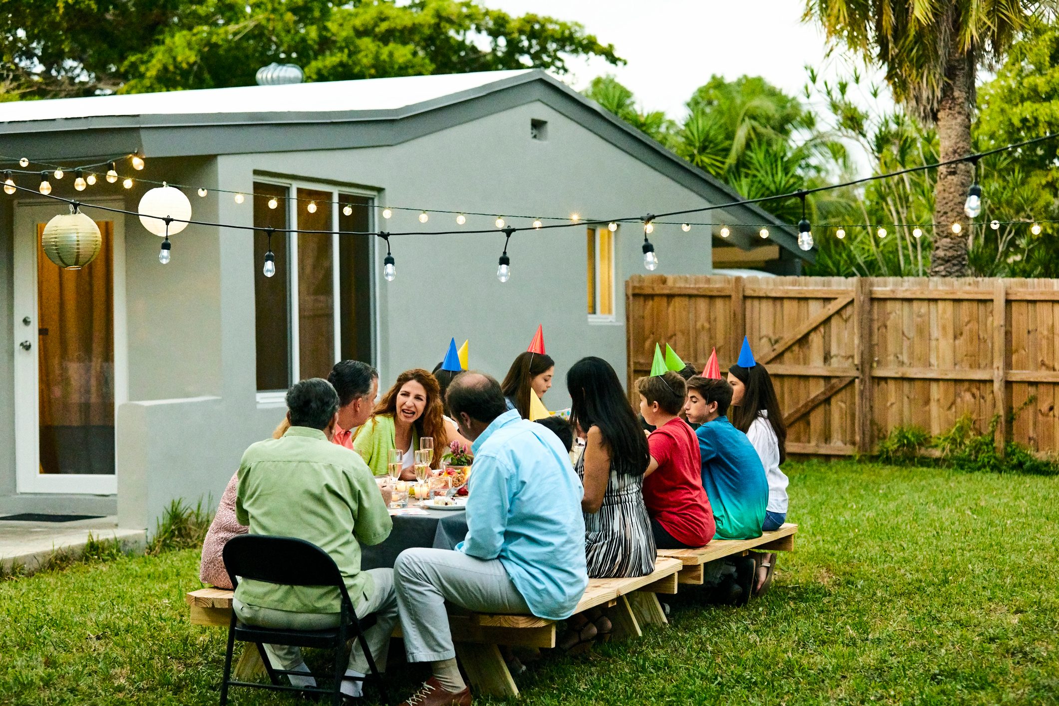 All great outdoor parties have a bonfire. You can dig, assemble, or build your own fire pit for minimal cost, and it will likely become the centerpiece of your backyard. Some cities have restrictions on fire-pit sizes and whether they have to be enclosed or not, but don’t worry. No matter what your local ordinances say, you can likely find a pit that will fall within the guidelines. A fire pit is also a great place to make into an additional seating area for your guests.
